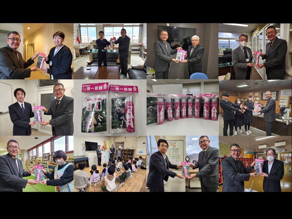 市内11の教育施設に熊撃退用スプレーを配布致しました。