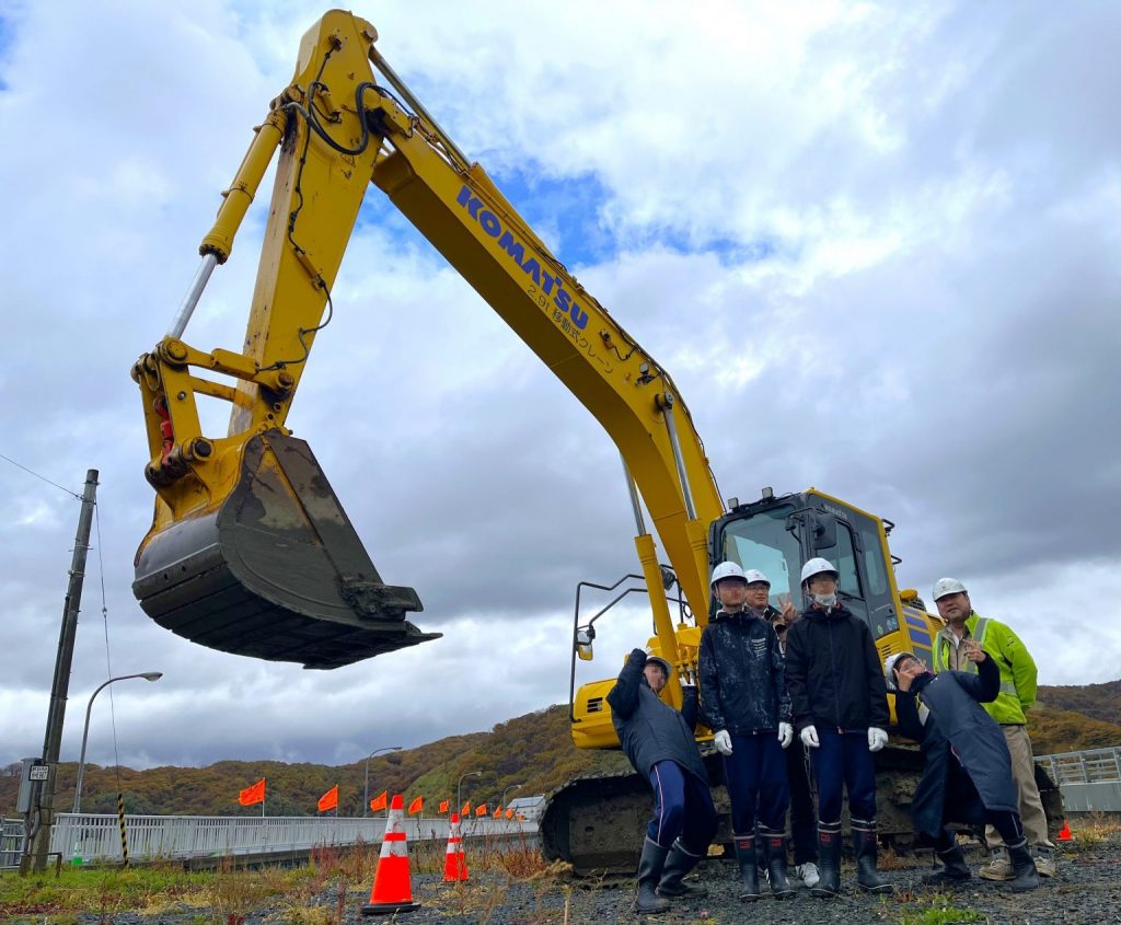 ユンボの試乗体験やシミュレーションに、クレーンを初めとした重機見学、現場に赴いて工事とはどんなものでどのような意義があるのかを現場代理人から伺うなどの体験をしていただきました。