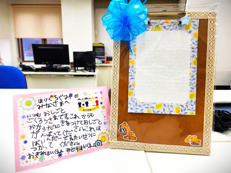 勤労感謝の日に際し、保育園の皆さんからプレゼントをいただきました。