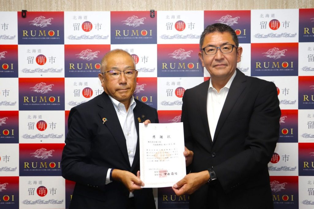 メディア情報 企業情報漏水事故への応援対応で市より感謝状をいただきました。 2025.11.11 8月23日、増毛町にて老朽化に起因した送水管破裂により、留萌市内で「濁り水」が発生しておりました。 各家庭で水を多く流して濁りを解消するよう呼びかけが行われましたが、沖見配水場の貯水量が危険水準に達したため、当社が市の要請を受けて、緊急で地域住民の皆さまへ給水支援を行いました。 9月23日、その支援が認められ、この度留萌市より感謝状をいただく次第となりました。 堀口組は地域の安心のために、これからも災害対応や支援活動に力を尽くしてまいります。 お知らせ一覧へ戻る < > RECENT 2025.11.11 不法投棄船舶4隻の撤去活動に対し留萌市より感謝状をいただきました 詳細はこちら 2025.11.11 倉庫解体に際し、遠別町より感謝状をいただきました 詳細はこちら 2025.11.11 羽幌中学校の生徒が職業体験で来社されました。 詳細はこちら CATEGORY 企業情報 採用情報 プレスリリース メディア情報 イベント ARCHIVES 2025年 2025年11月 (7) 2025年8月 (5) 2025年7月 (4) 2025年6月 (2) 2025年5月 (1) 2025年4月 (2) 2025年3月 (4) 2025年1月 (1)2024年 2024年12月 (5) 2024年11月 (7) 2024年10月 (4) 2024年9月 (7) 2024年8月 (2) 2024年7月 (2) 2024年6月 (7) 2024年5月 (5) 2024年4月 (3) 2024年3月 (3) 2024年2月 (7) 2024年1月 (2)2023年 2023年12月 (2) 2023年11月 (5) 2023年10月 (1) 2023年9月 (2) 2023年8月 (2) 2023年7月 (5) 2023年6月 (2) 2023年4月 (3) 2023年3月 (3) 2023年2月 (3) 2023年1月 (3)2022年 2022年12月 (2) 2022年10月 (2) 2022年8月 (1) 2022年5月 (1) 2022年4月 (1) 2022年3月 (2) 2022年1月 (2)2021年 2021年12月 (1) 2021年10月 (2) 2021年9月 (2) 2021年8月 (2) 2021年7月 (3) 2021年6月 (1) 2021年4月 (4) 2021年3月 (3) 2021年2月 (1)2020年 2020年12月 (2) 2020年11月 (1) 2020年10月 (1) 2020年9月 (4) 2020年8月 (2) 2020年7月 (2) 2020年6月 (2) 2020年2月 (2)2019年 2019年11月 (2) 2019年7月 (1) 2019年6月 (2) 2019年4月 (2) 2019年3月 (2) 2019年2月 (1) 2019年1月 (1)2018年 2018年12月 (2) 2018年11月 (3) 2018年10月 (1) 2018年9月 (1) 2018年7月 (3) 2018年6月 (2) 2018年5月 (2) 2018年4月 (3) 2018年3月 (2) 2018年2月 (1) 2018年1月 (2)2017年 2017年12月 (2) 2017年11月 (1) 2017年10月 (1) 2017年8月 (4) 2017年6月 (2) 2017年5月 (5) 2017年4月 (2) 2017年3月 (1)